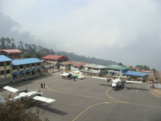 エベレストトレッキングの起点となる空港がある村、標高2840mにあり、ヒマラヤの山間に空港があります。