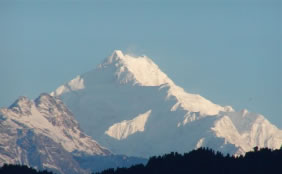 ネパールとインド国境にあるシッキム・ヒマラヤの中心をなす山群の主峰。エベレスト、K2に次いで世界第3位。西峰(ヤルン・カン8,505m)、中央峰(8,478m)、南峰(8,476m)が並ぶ。