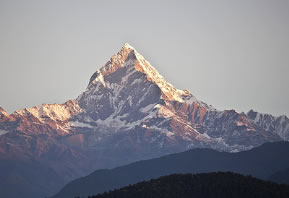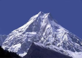 マチャプチャレはネパールの中北部のアンナプルナ山系にある山である。ポカラから北へ25kmにあることもあり、ポカラ市内から迫力のある雄大な姿を見ることが出来ます。この山はシヴァ神に関連する特に神聖な山として地元住民によって崇敬されており、登山が禁止されています。